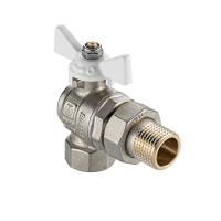 Кран шаровой BASE-ГОСТ угл со сгоном и штуцером с белой рукояткой-бабочкой вн.-нар. DN15, PN40, 1/2"